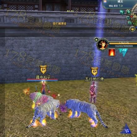 去找镜中仙子,就在城北五行地巡使旁边。这里有三只老虎,莫非是因为老虎练级不容易,所以都来凑热闹?
